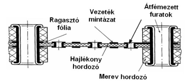 3. ábra. Kombinált (merev-flexibilis) többrétegű nyomtatott huzalozás