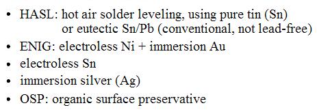 An obvious material for surface finish is tin (Sn), or eutectic tin-lead (Sn-Pb) in case of conventional – but more and more prohibited – soldering. It is cheap, easily applicable and compatible with the applied solders. An easy way to apply tin surface finish to the PWB pads is HASL (Hot Air Solder Leveling) technology, in which the substrate is cleaned, treated with flux and dipped into a solder bath. The excess solder is removed by air knives. The main disadvantage of HASL technology is that it makes the surface bumpy which is not suitable for fine pitch components.