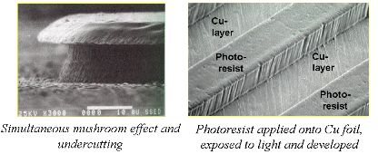SEM photos show undercutting, the mushroom effect and photoresist application